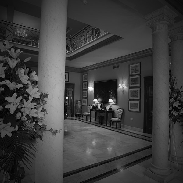 Situado en la planta baja, comunica con el hall de entrada, con ventanales hacia el patio de columnas, decorado con una colección de antiguos grabados de Granada y una gran chimenea de estilo.